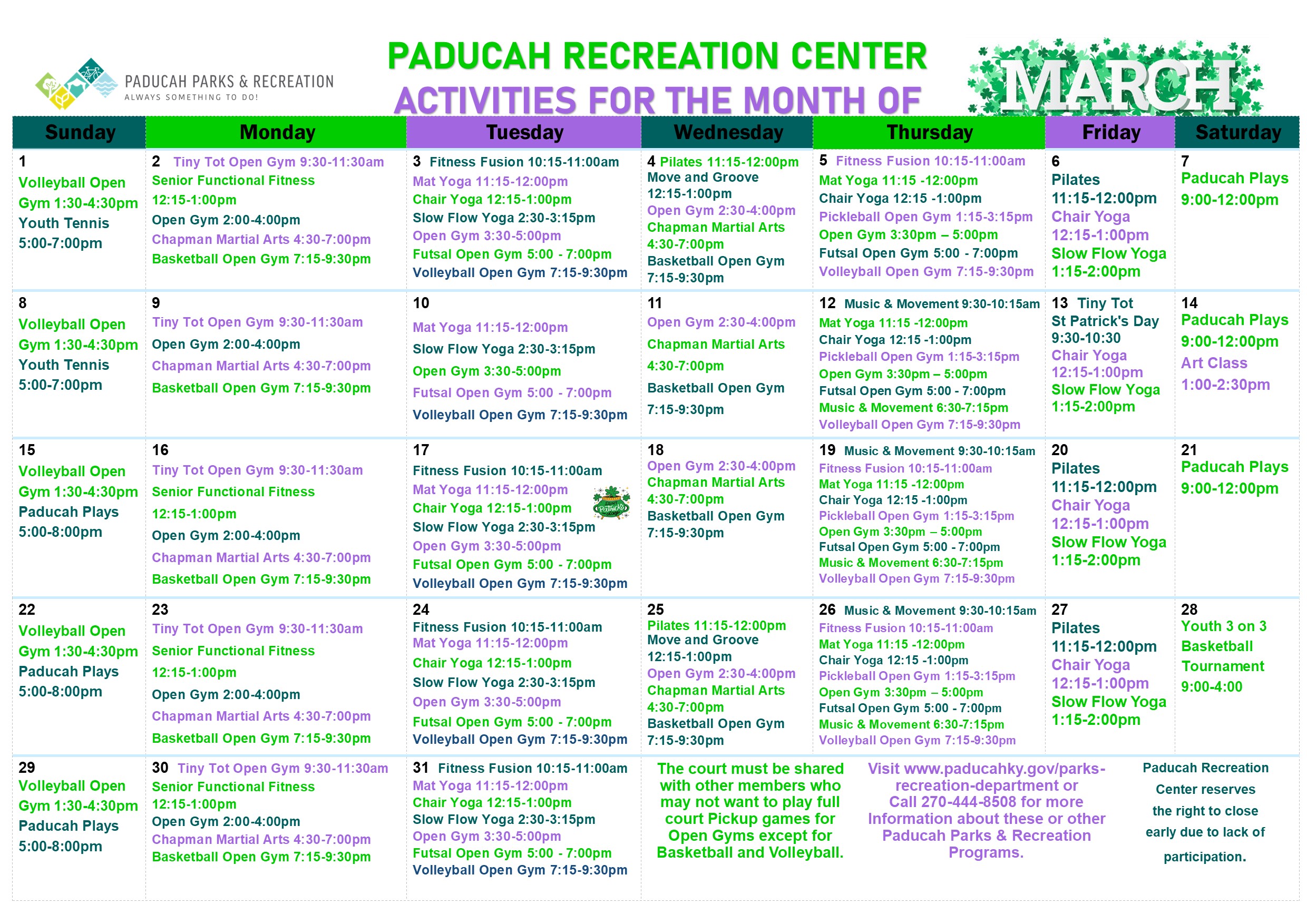 - All patrons are required to follow facility rules. City of Paducah reserved the ight to remove any and all persons who do not adhere to facility rules.